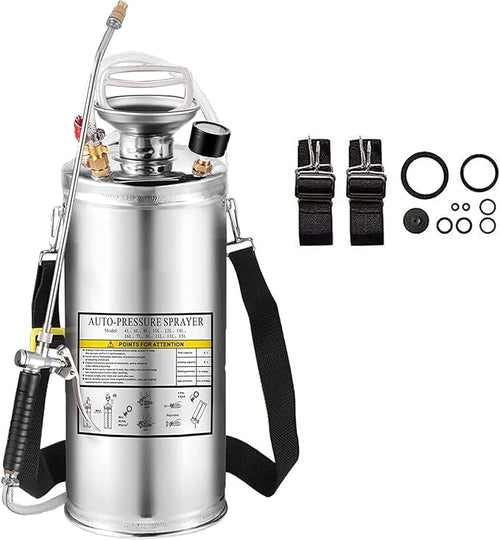 1.5gal Stainless Steel Sprayer, Hand Pump Sprayer with Pressure Gauge & Safety Valve, Stainless Garden Weed Sprayer for Gardening, Lawn, Yard, Indoor and Outdoor Spraying Needs